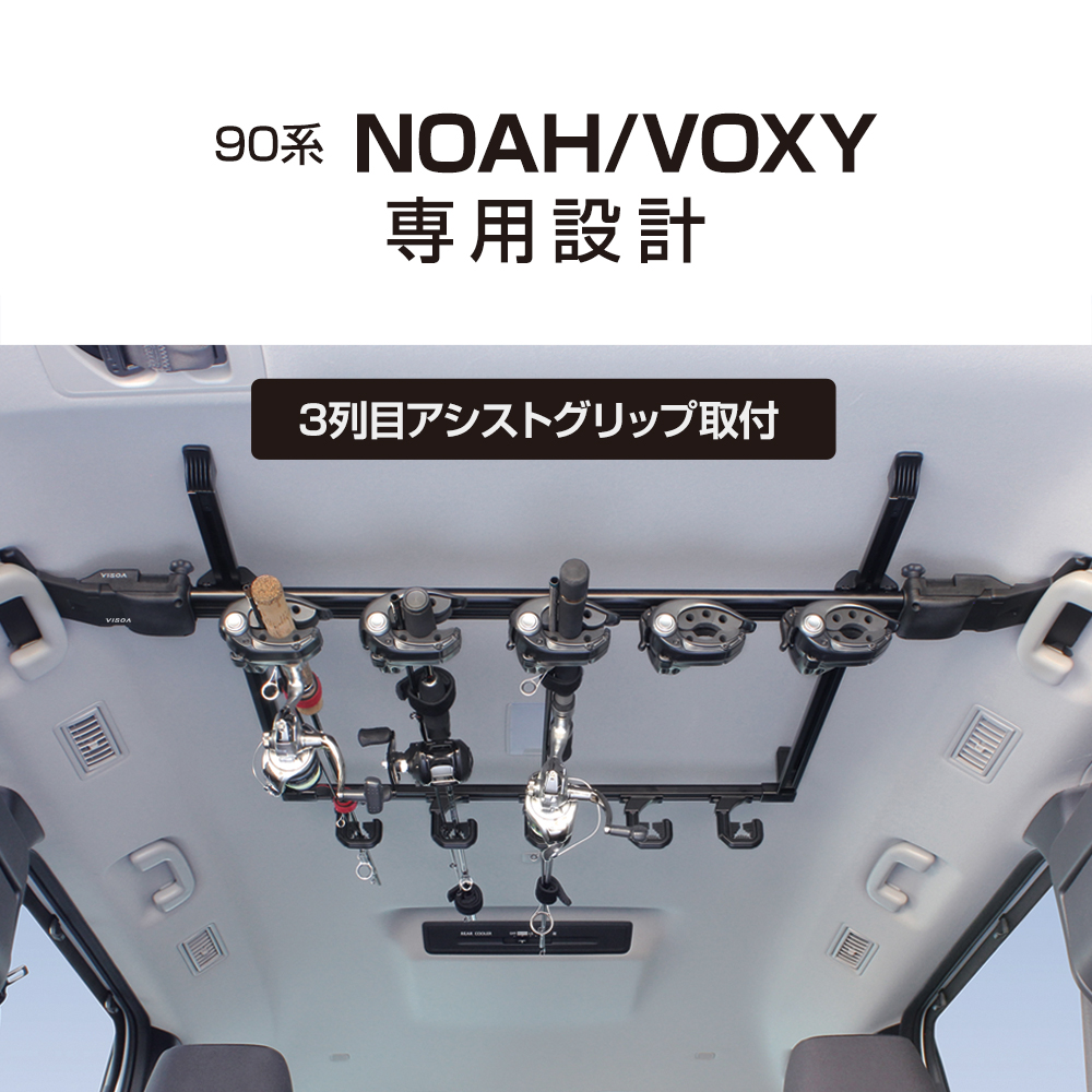 ●80系NOAH/VOXY/ESQUIRE(2019年8月現在)の3列目アシストグリップに取り付ける5本用ロッドホルダー。