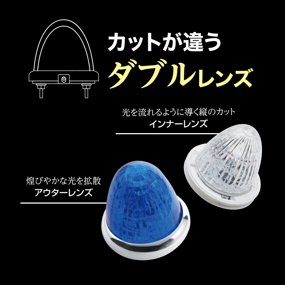 ●牙のようなレンズカットラインと全てを包み込むような明るさのマーカーランプです。