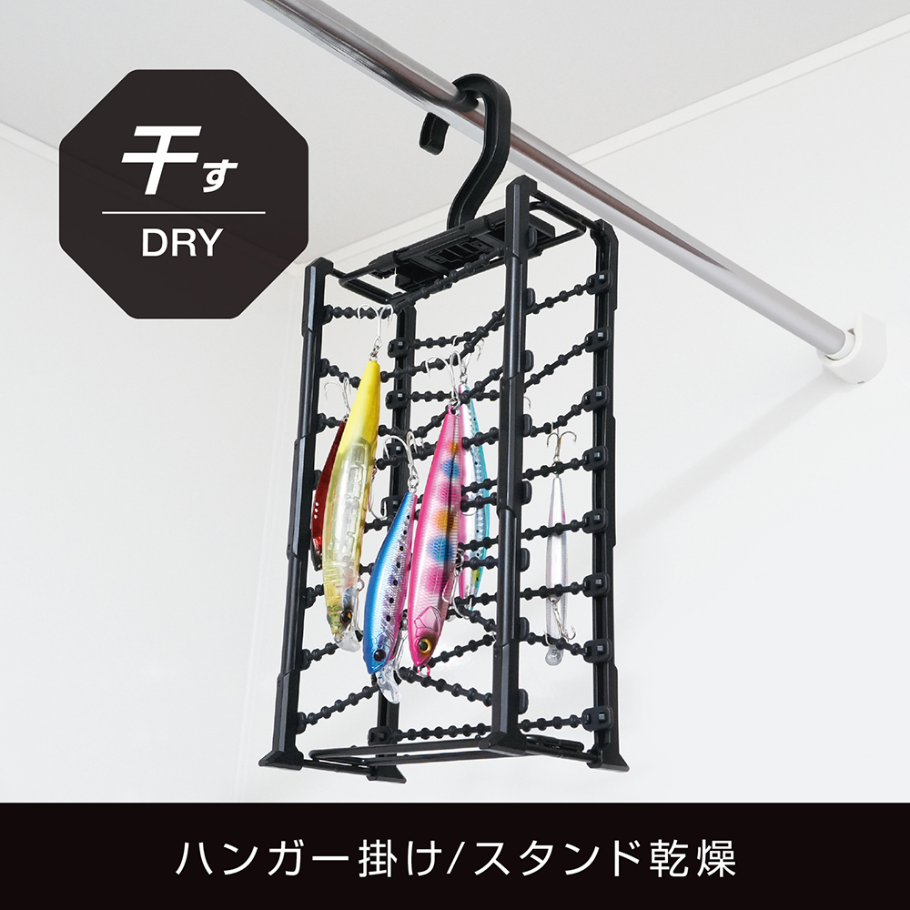 ●掛ける・洗う・干すというルアーメンテナンス行為を効率よく行なえるハンガーです。