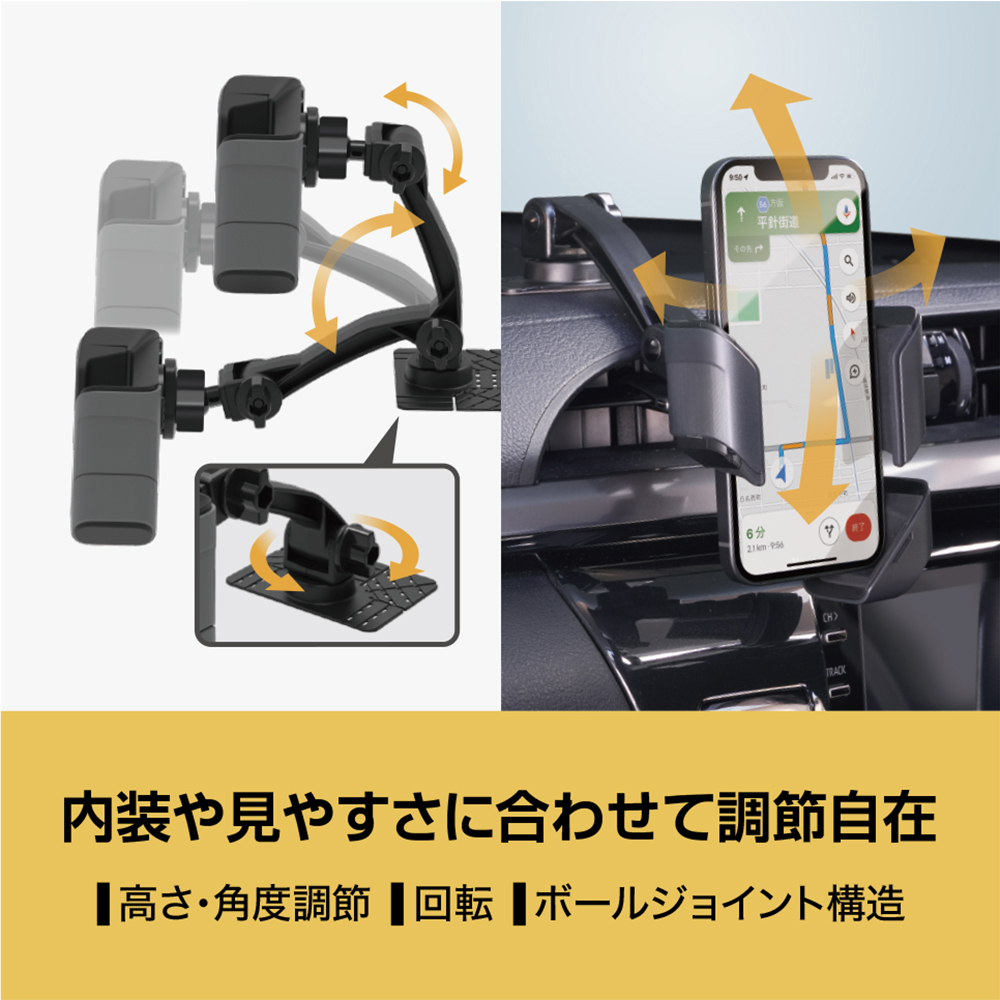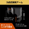 ●スマートフォンを片手で簡単に脱着できる3点式保持アームです。