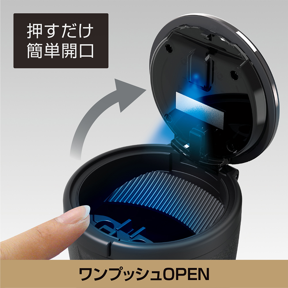 ●フタを開けると周りの暗さに反応し、自動でブルーLEDが点灯します。(明暗判別機能)